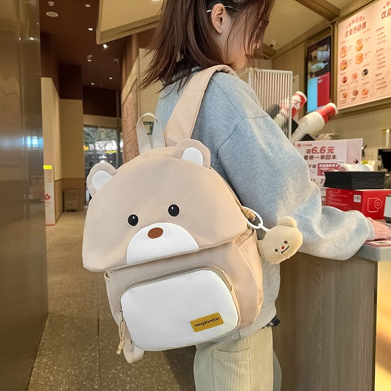 NICE新款日系可爱棕色小熊百搭学生软妹双肩包大容量电脑书包