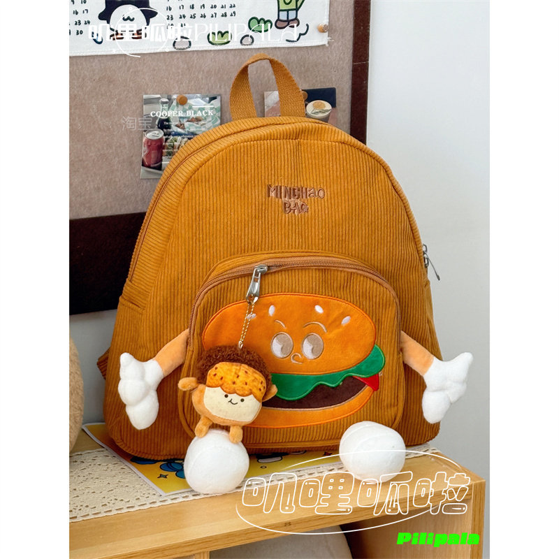 可爱丑萌汉堡书包女大学生日系卡通小背包大容量灯芯绒软妹双肩包