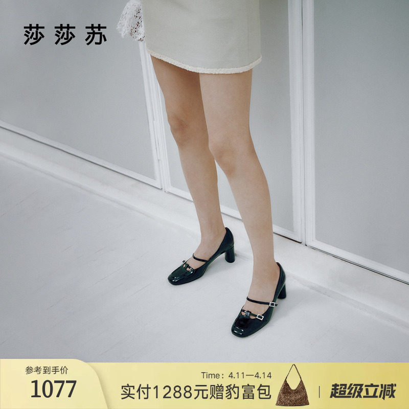 [圆舞曲]莎莎苏春夏新款法式粗跟玛丽珍小皮鞋圆头高跟鞋女单鞋