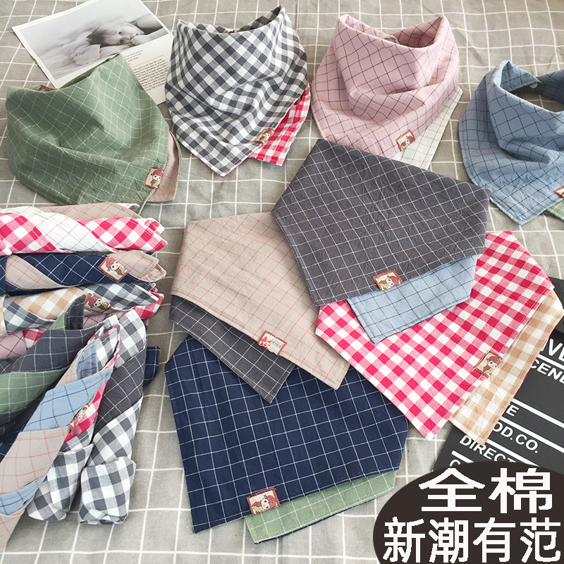 新纯棉宝宝围巾韩版婴幼儿三角巾春秋双面格子男女儿童方巾领巾冬