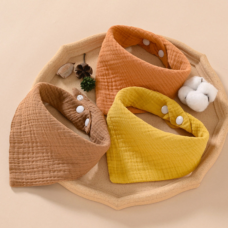 婴儿三角巾纯色口水巾纯棉透气纱布宝宝儿童围嘴四层薄款a类ins风