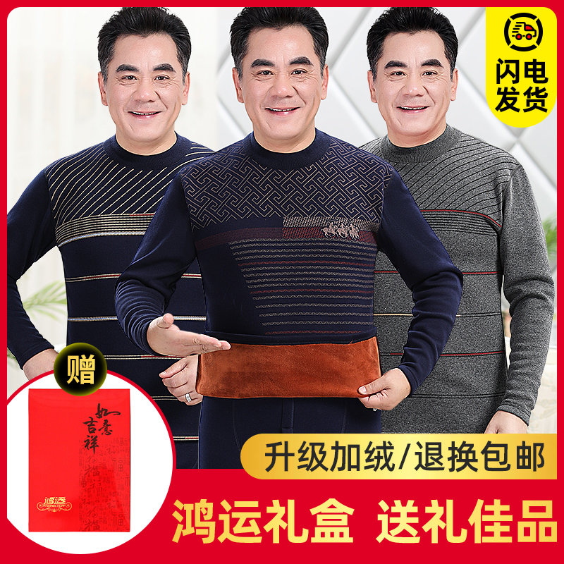 老人保暖内衣加绒加厚套装高领大码爸爸暖和冬天秋衣秋裤男礼盒装