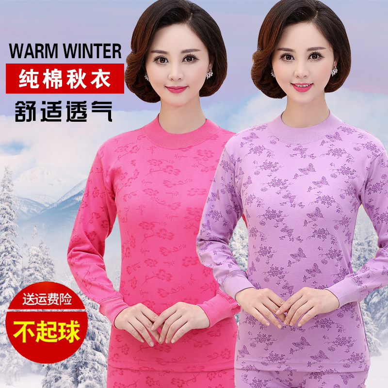 妈妈纯棉秋衣秋裤女士中老年全棉薄款老人保暖内衣女款棉毛衫套装
