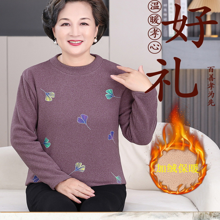 老人保暖内衣女加绒加厚中老年打底衫半高领妈妈奶奶大码上衣服冬