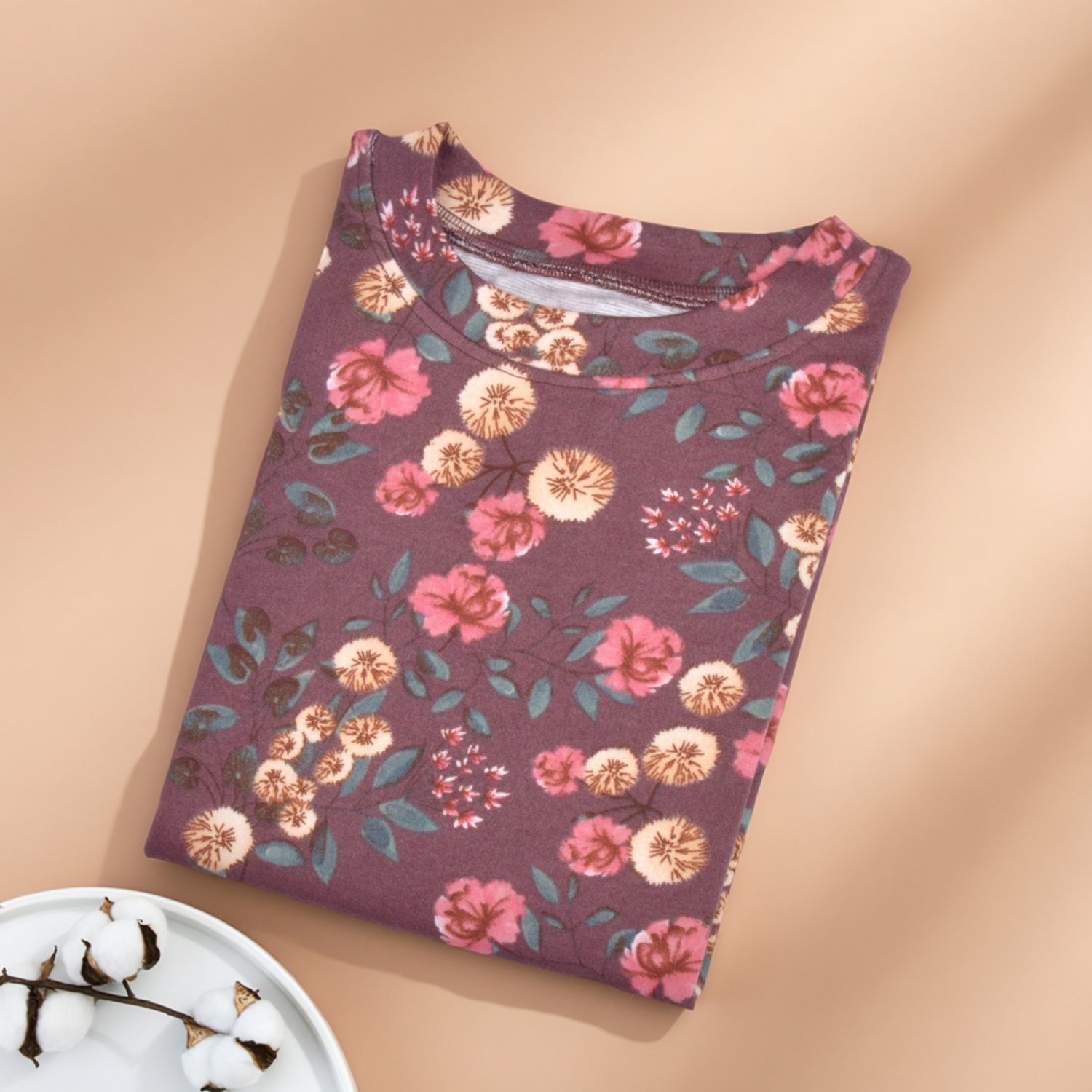中老年女士德绒碎花秋衣秋裤套装老人保暖内衣妈妈装圆领线衣线裤
