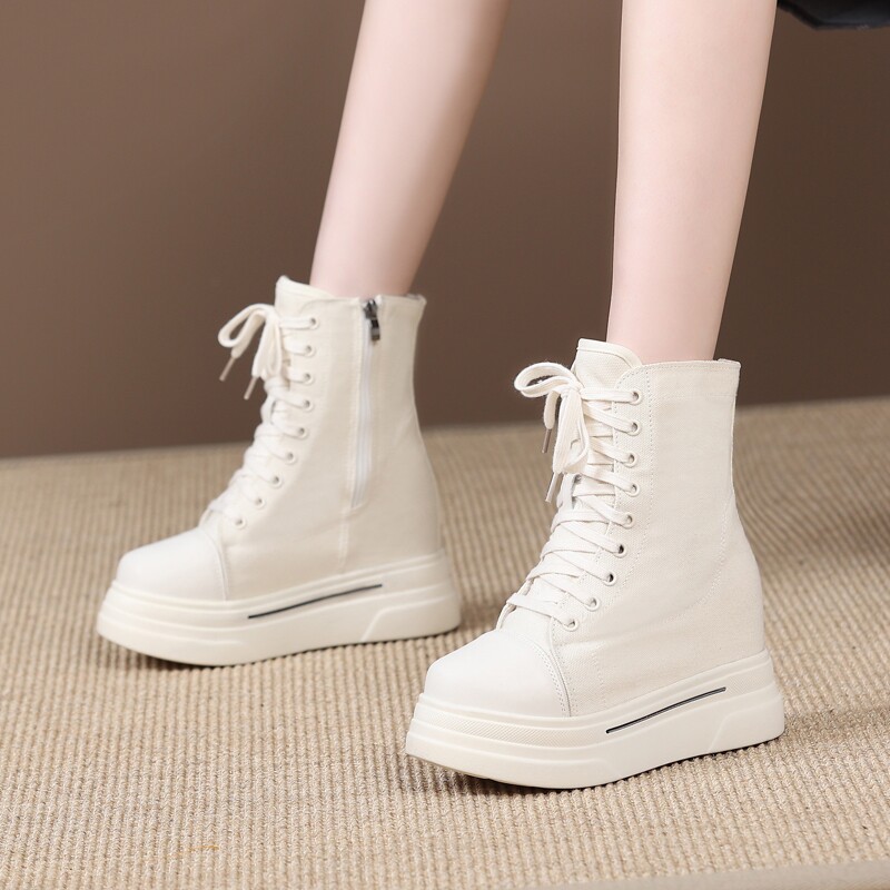 14厘米隐形增高马丁靴女2025新款春秋单靴小个子内增高百搭帆布鞋