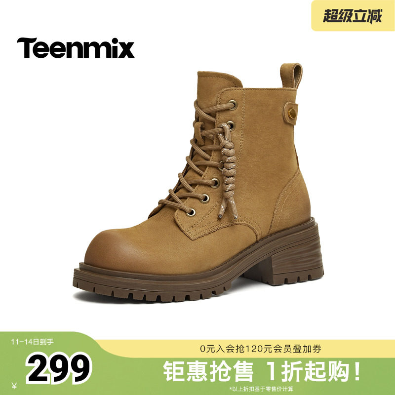天美意冬新款商场同款系带户外百搭增高女马丁靴BM671DD5