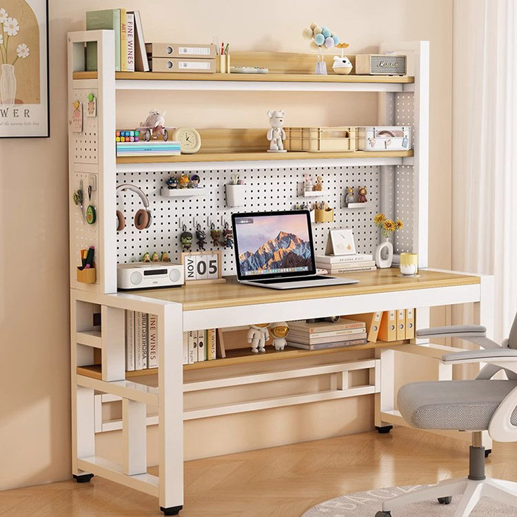 电脑桌书架一体桌学生收纳组合学习桌子多层铁艺洞洞板书桌置物架