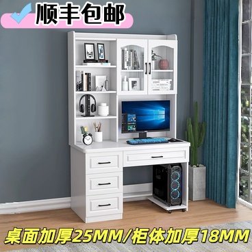 电脑桌台式家用简约办公收纳组合桌子学生卧室书桌书架一体写字桌