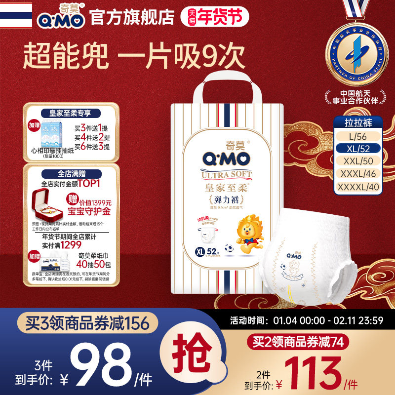 奇莫皇家至柔拉拉裤L-4XL码软透气婴幼儿尿不湿2包大吸量正品春夏