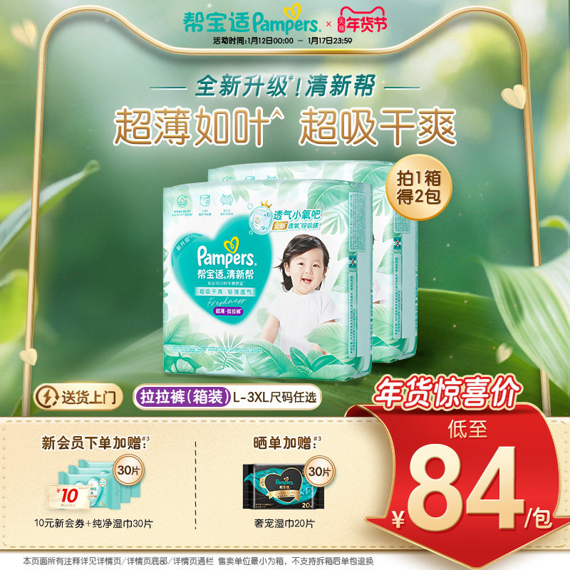 【散热超薄透气】帮宝适清新帮透氧Pro拉拉裤L-3XL尿不湿尿裤箱装