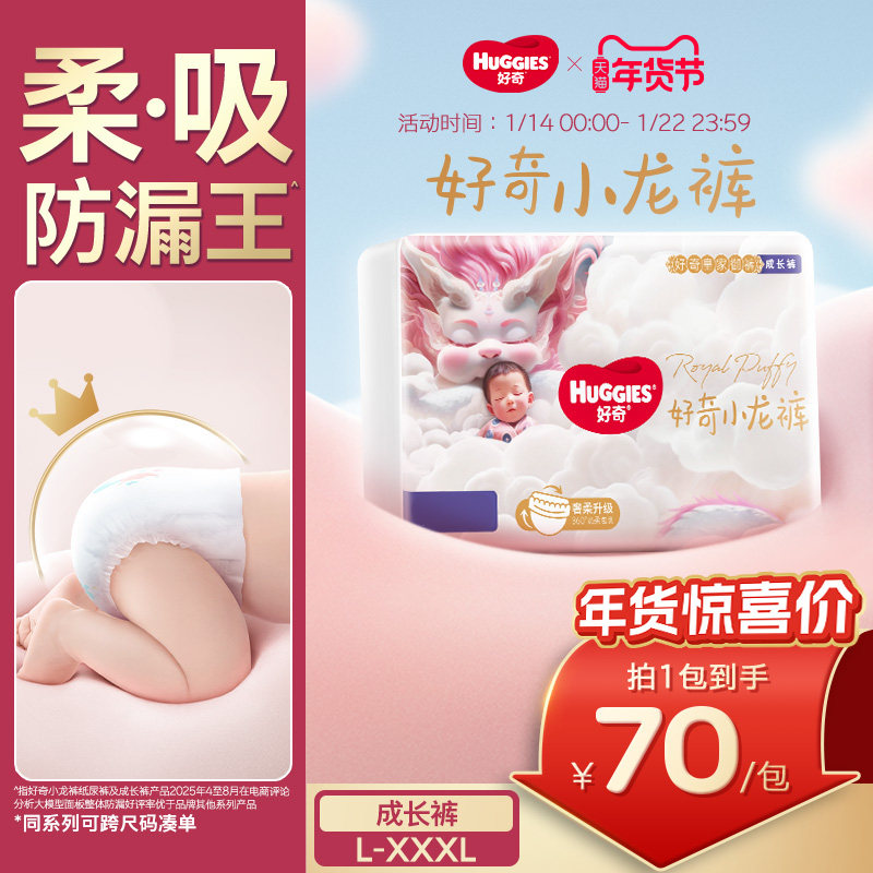 好奇官方皇家御裤小龙裤柔吸防漏王成长裤拉拉裤L-XXXL尿不湿