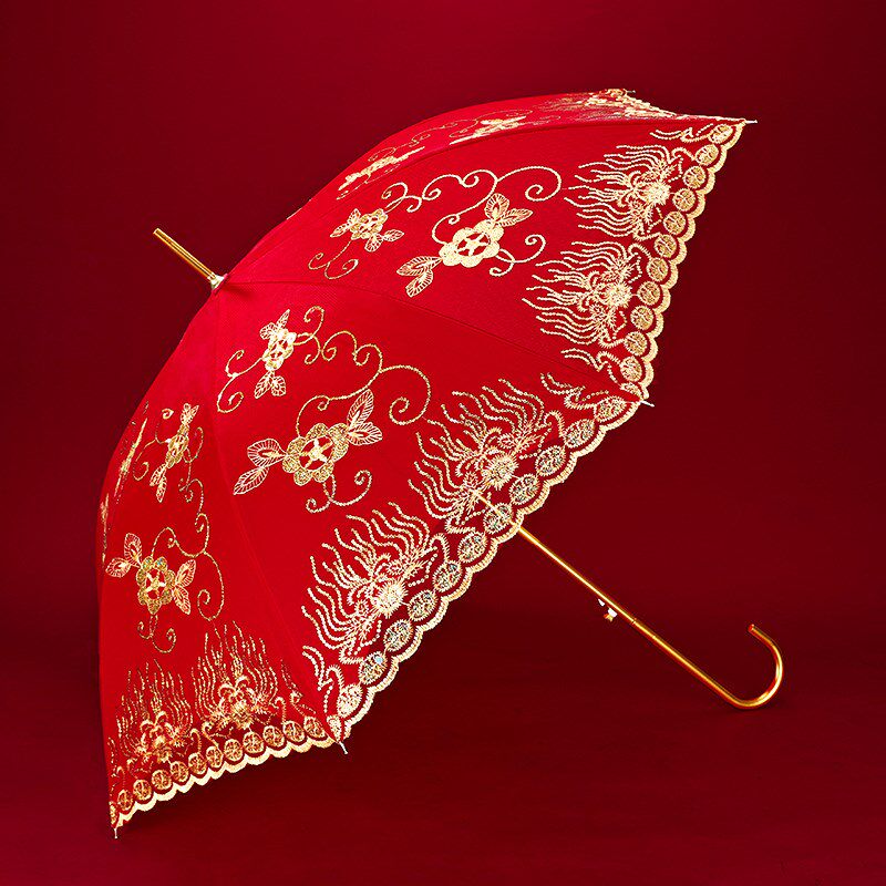 结婚红色雨伞结婚出嫁新娘伞蕾丝花边刺绣中式长柄丝新郎伞结婚伞