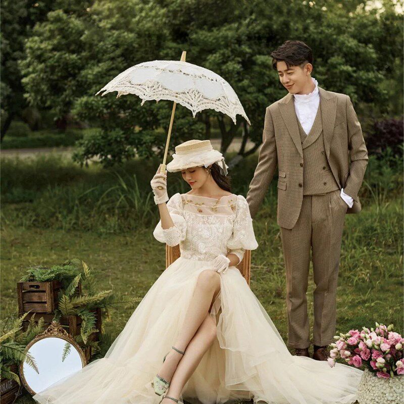 蕾丝伞公主洋伞婚纱照外景摄影道具法式白色花边伞舞蹈伞走秀装饰