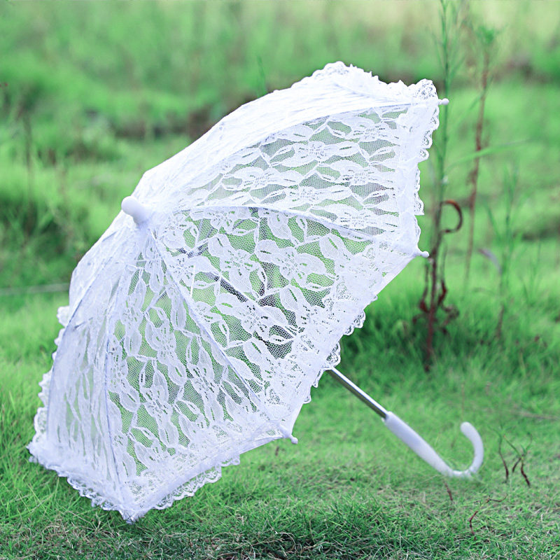 厂家直销小清新镂空蕾丝伞婚纱写真摄影道具白色蕾丝木柄伞布艺伞