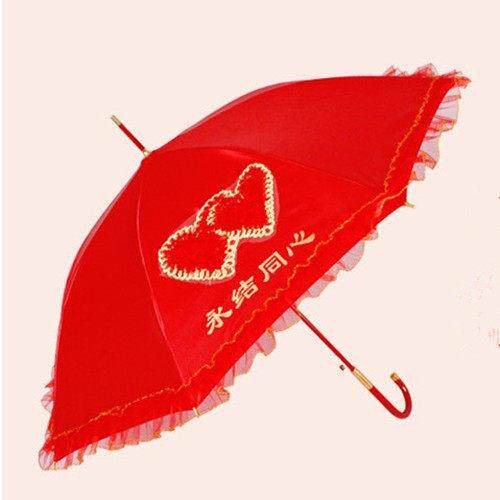 结婚用大红伞蕾丝伞婚礼女方陪嫁出嫁送新娘长柄雨伞婚庆用品大全