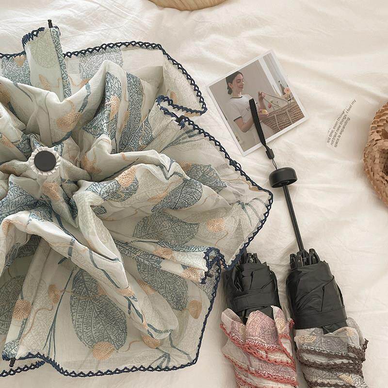 超轻细小蕾丝伞!双层刺绣印花黑胶防晒抗UV迷你可携式遮阳伞女