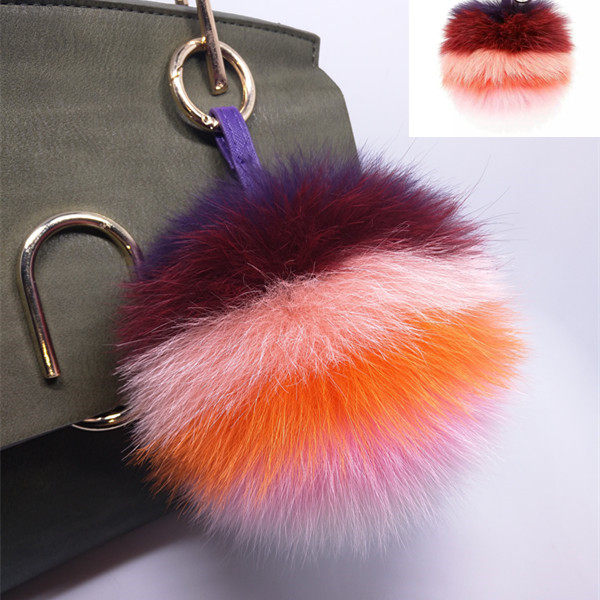 超大彩虹狐狸毛球高档包包钥匙扣挂件拼色狐狸毛毛球包包挂饰包邮