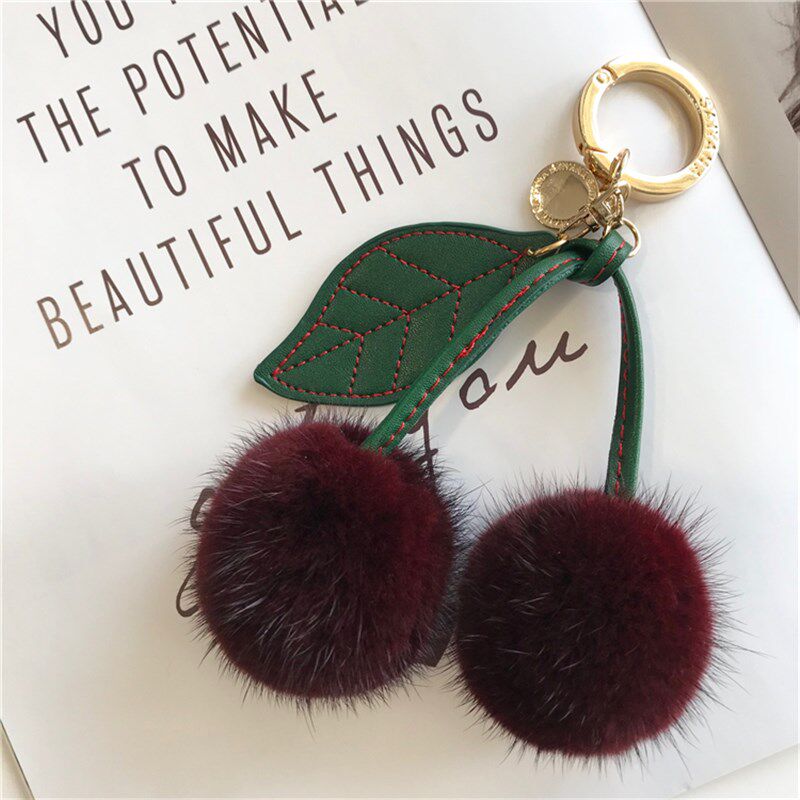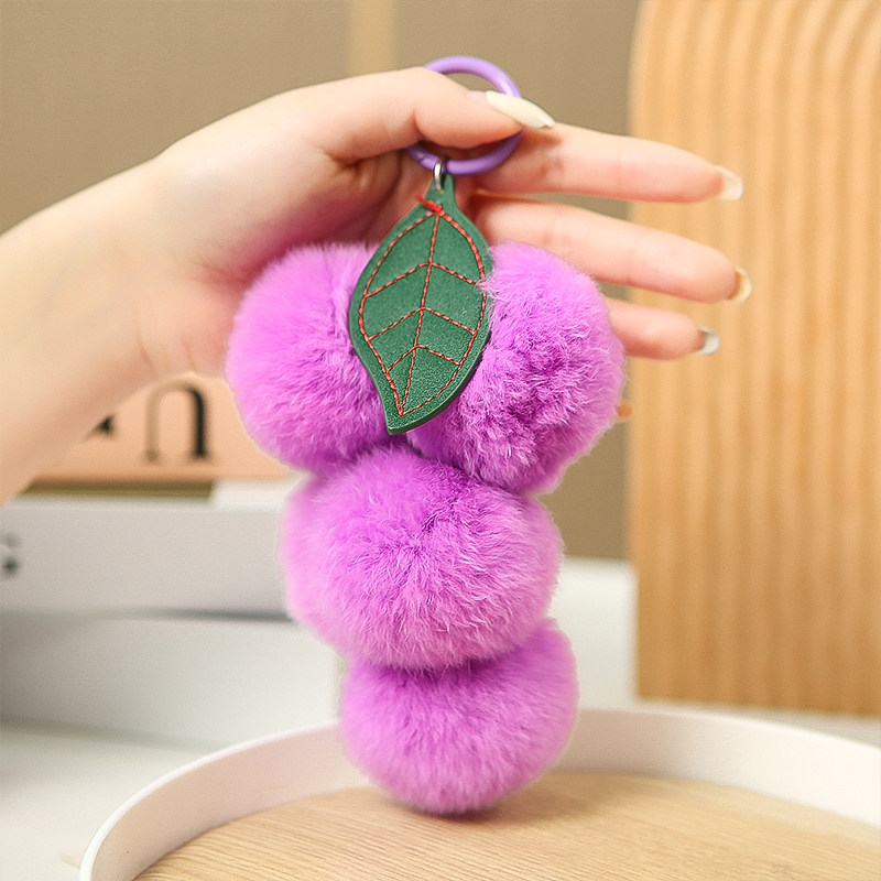 水果系葡萄真毛超大獭兔毛毛球包包挂件可爱毛绒车钥匙扣包挂饰女