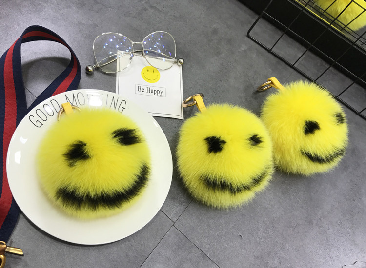 cc家 进口狐狸毛超大毛球 黄色笑脸毛球皮草挂件 包包挂件钥匙扣