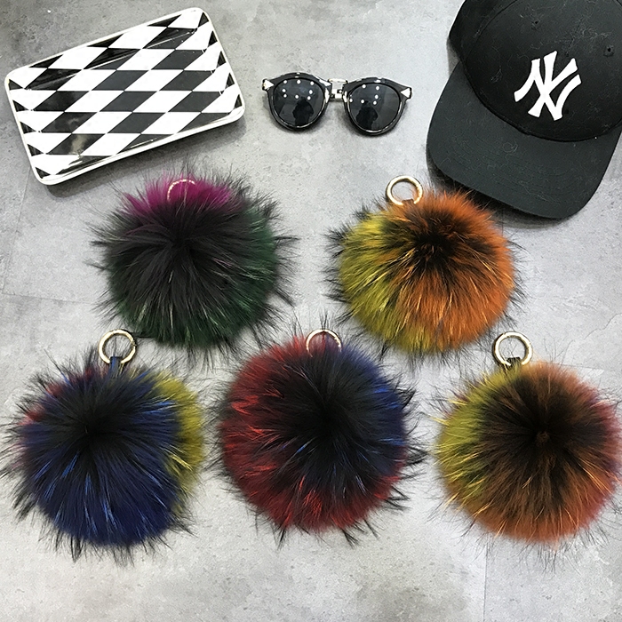 cc家皮草 美炸天七彩色貉子毛球挂件超大染色狐狸毛球挂件 钥匙扣