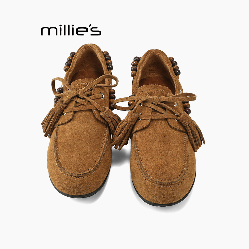 MILLIE'S/妙丽流苏串珠吊坠乐福鞋女真皮平底休闲豆豆懒人单鞋女Z