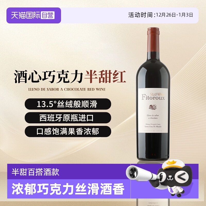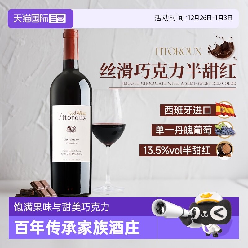 西班牙原瓶进口巧克力半甜红干红葡萄酒13.5%度微醺热红酒礼盒装