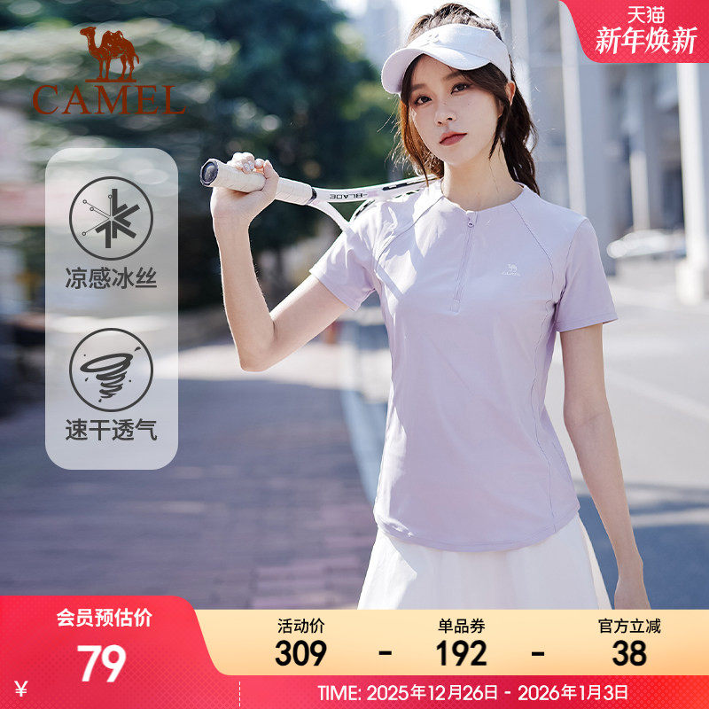 骆驼速干T恤女短袖运动上衣 2025春夏新款网球服冰丝晨跑瑜伽服女
