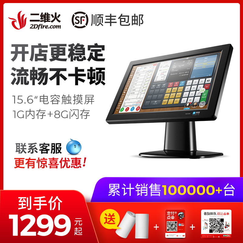 二维火收银机All触控屏幕 超市奶茶餐饮点餐机收款机 收银系统 四
