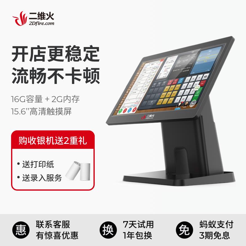 二维火收银机一体机触摸屏 超市奶茶餐饮点餐机收款机 收银系统