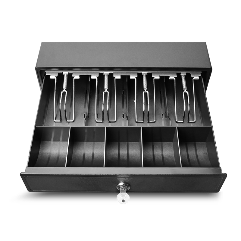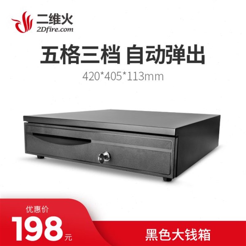 黑色大钱箱 二维火收银机收款收A银钱箱 钱柜钱盒S子带锁 五格三