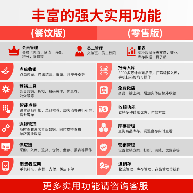 二维火芯片收银机餐饮收银工牌移动点餐机收款系统零售超市多业态手持收银系统小程序搭建会员员工管理系统