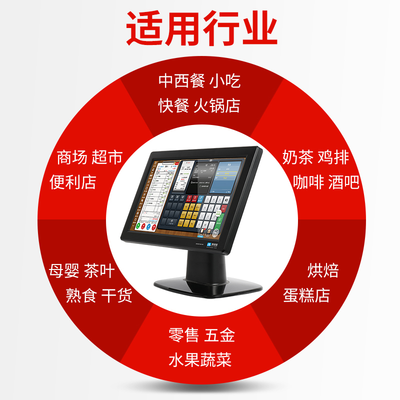 二维火收银机一体机超市收银机触摸屏商场便利店收款机收银系统四核处理器