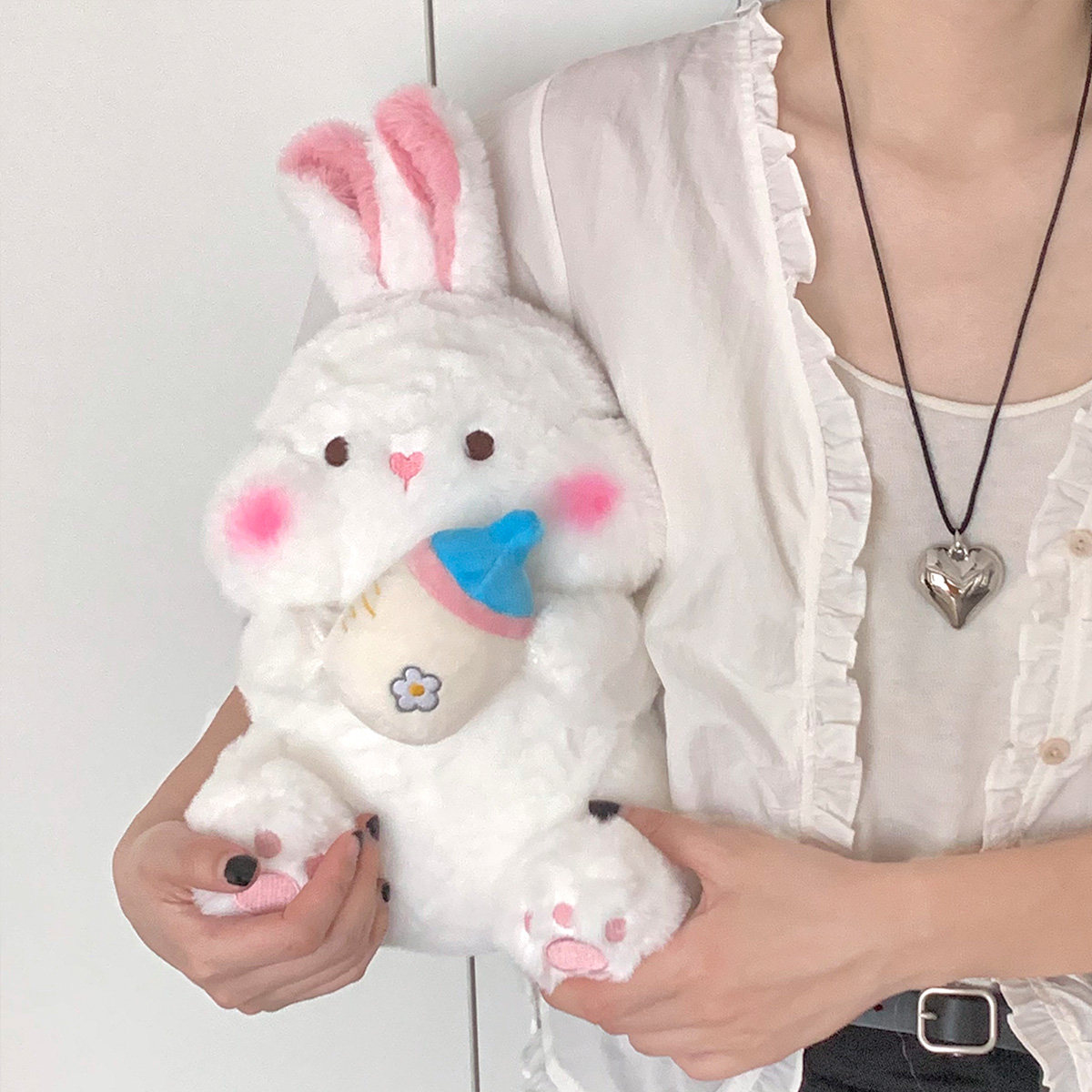 害羞甜甜兔!奶瓶兔子毛绒玩具公仔可爱兔玩偶安抚娃娃女生日礼物