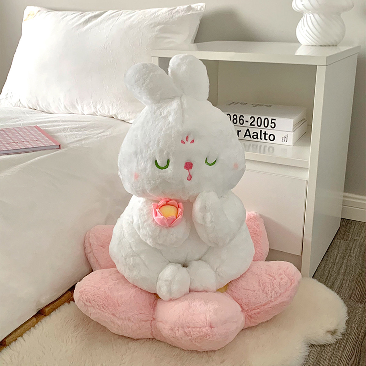 好运莲莲~佛系兔子玩偶可爱莲花坐垫小白兔搞怪毛绒玩具生日礼物