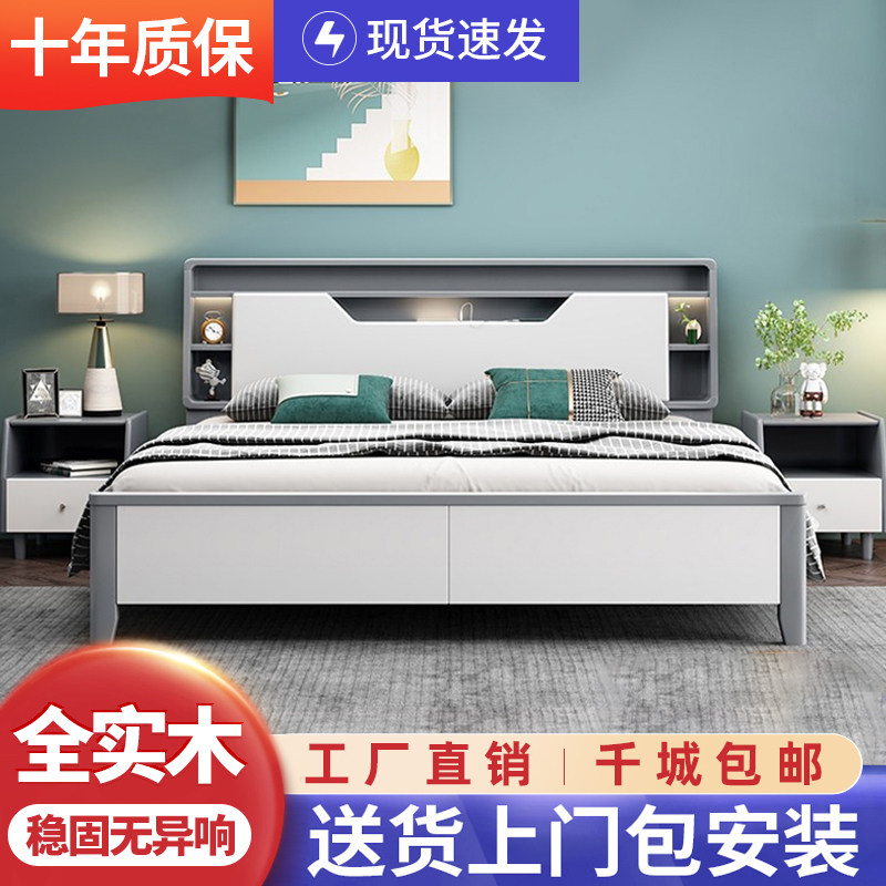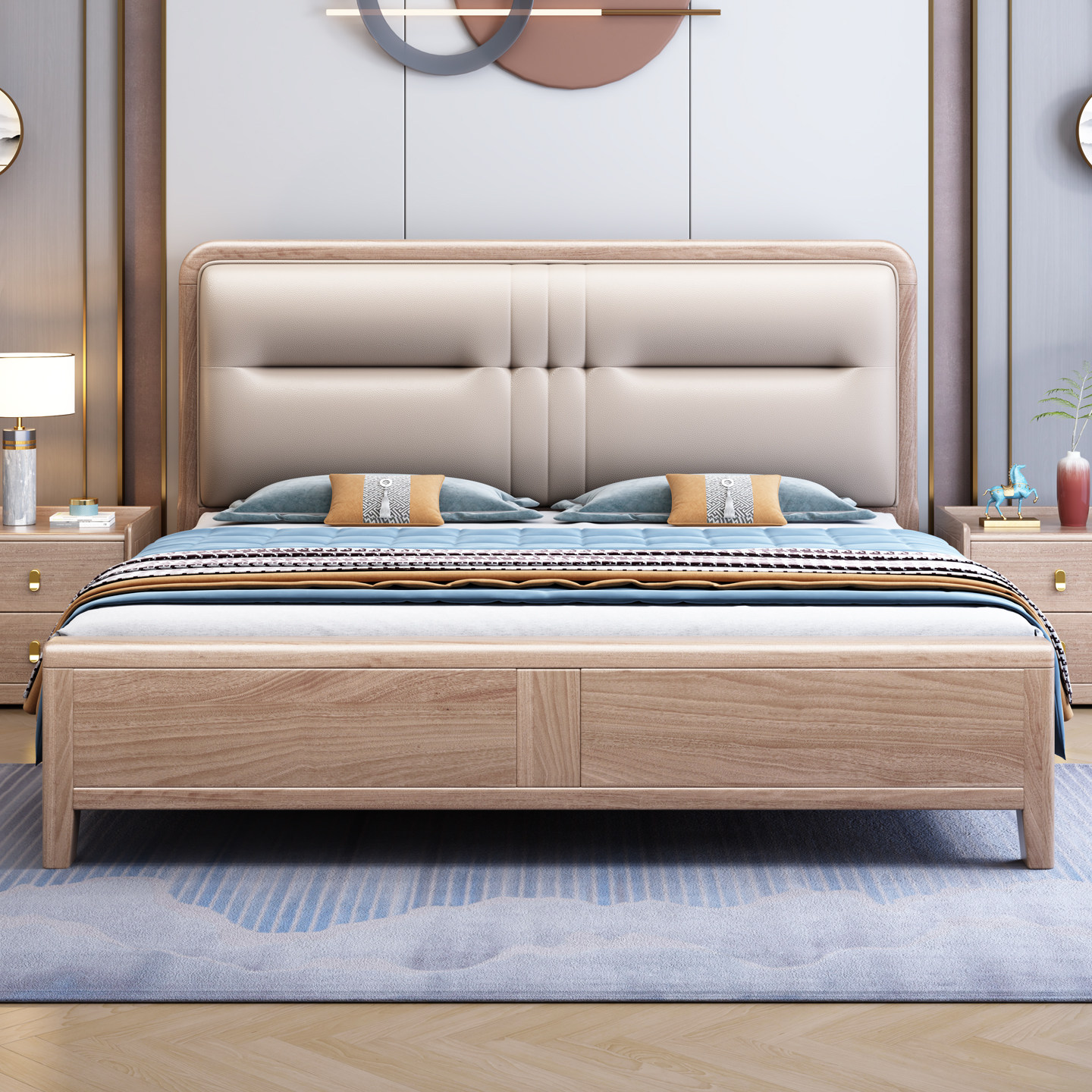床全实木现代简约1.5米主卧轻奢双人床出租房用1.2橡木储物单人床