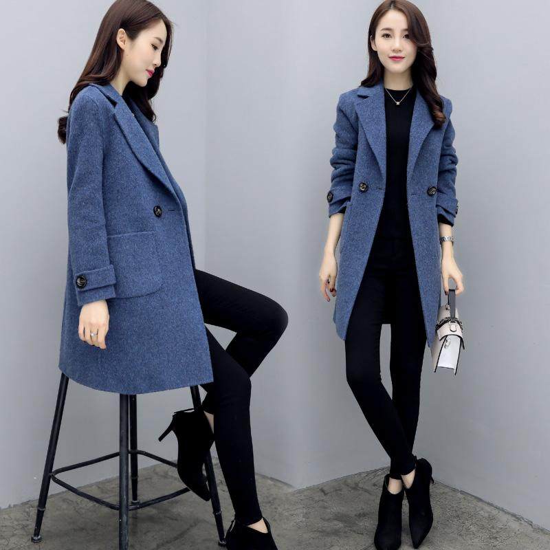 - 中长款修身韩版毛呢