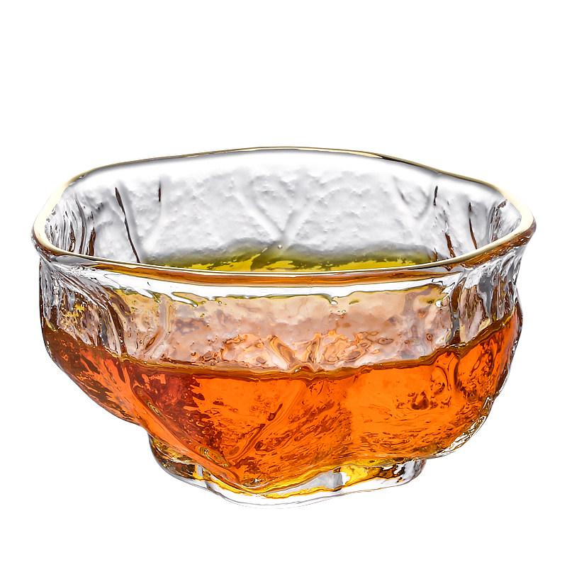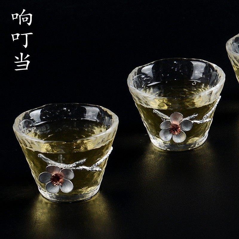 镶锡锤纹带把玻璃茶杯小杯子耐热功夫茶具品茗杯主人杯家用花茶杯