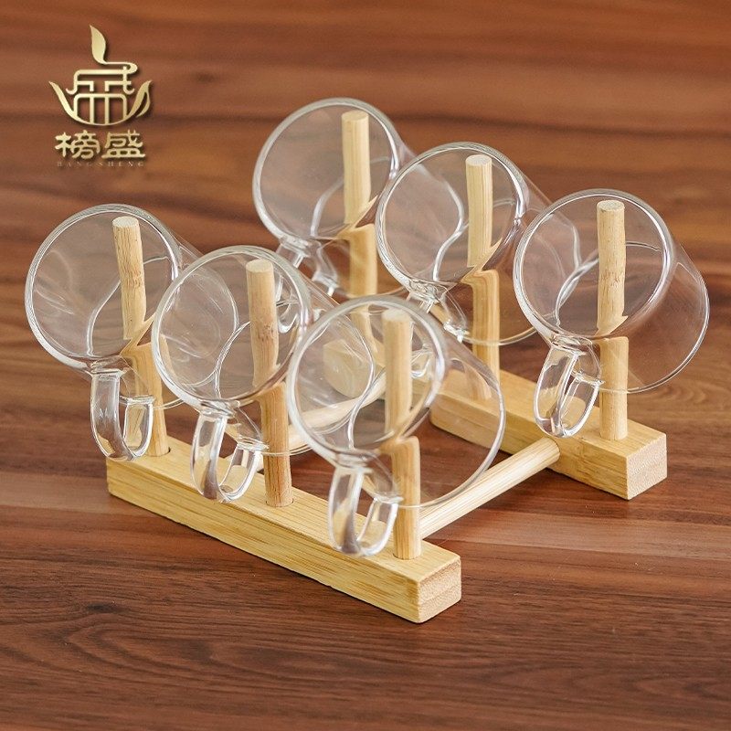榜盛玻璃茶杯小杯子玻璃杯带把品茗杯功夫小茶杯6只装茶具品茶杯