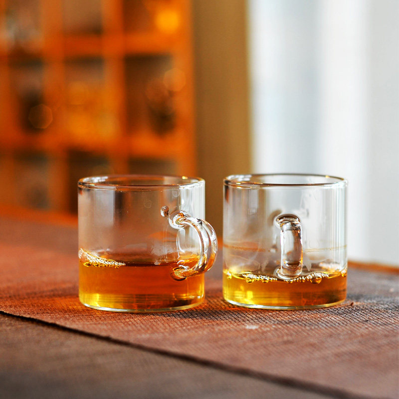 加厚玻璃小茶杯带把6只装透明玻璃品茗杯耐热玻璃茶杯小杯子迷你