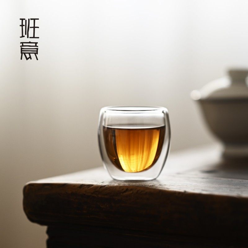耐热玻璃茶杯小杯子带把加厚品茗杯家用双层杯茶碗主人杯功夫茶具