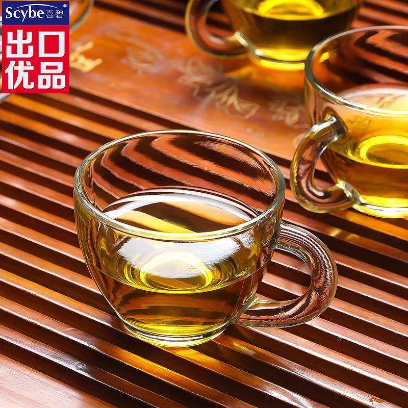 scybe喜碧玻璃茶杯小杯子套装带把耐热功夫小茶杯玻璃茶具12只装