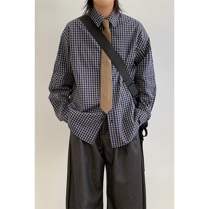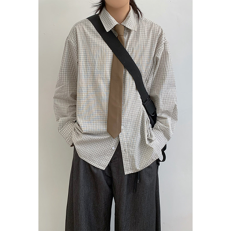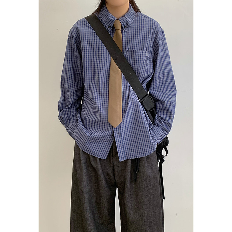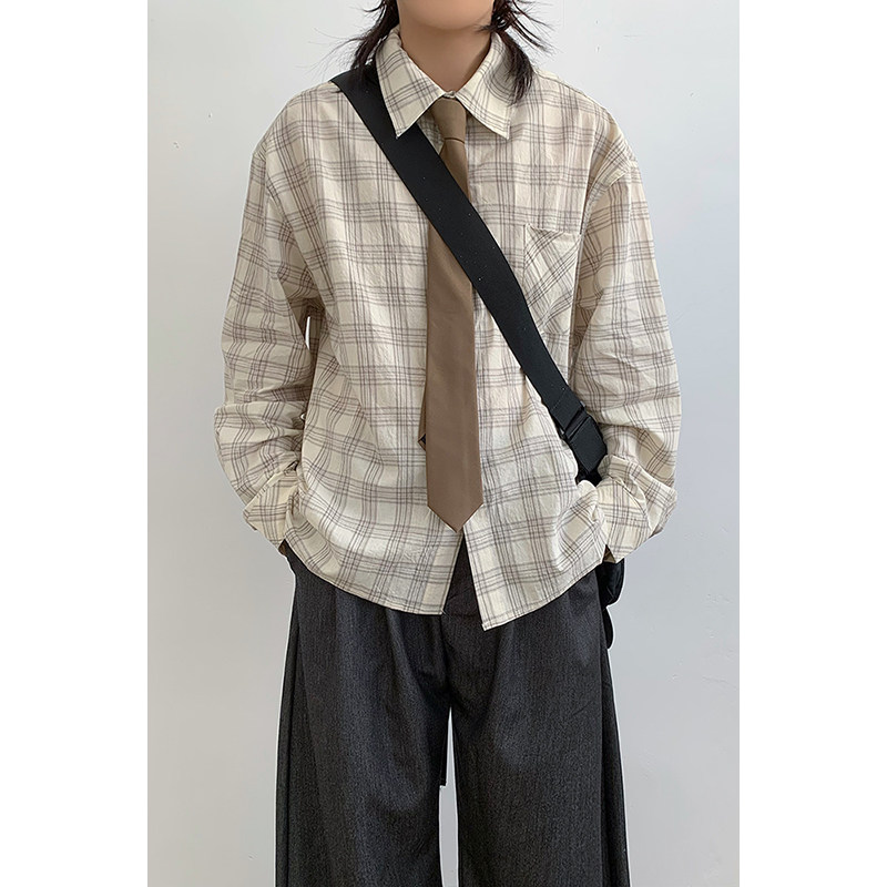 林弯弯春秋慵懒日系格纹衬衫男女生学院风长袖cleanfit衬衣外套潮