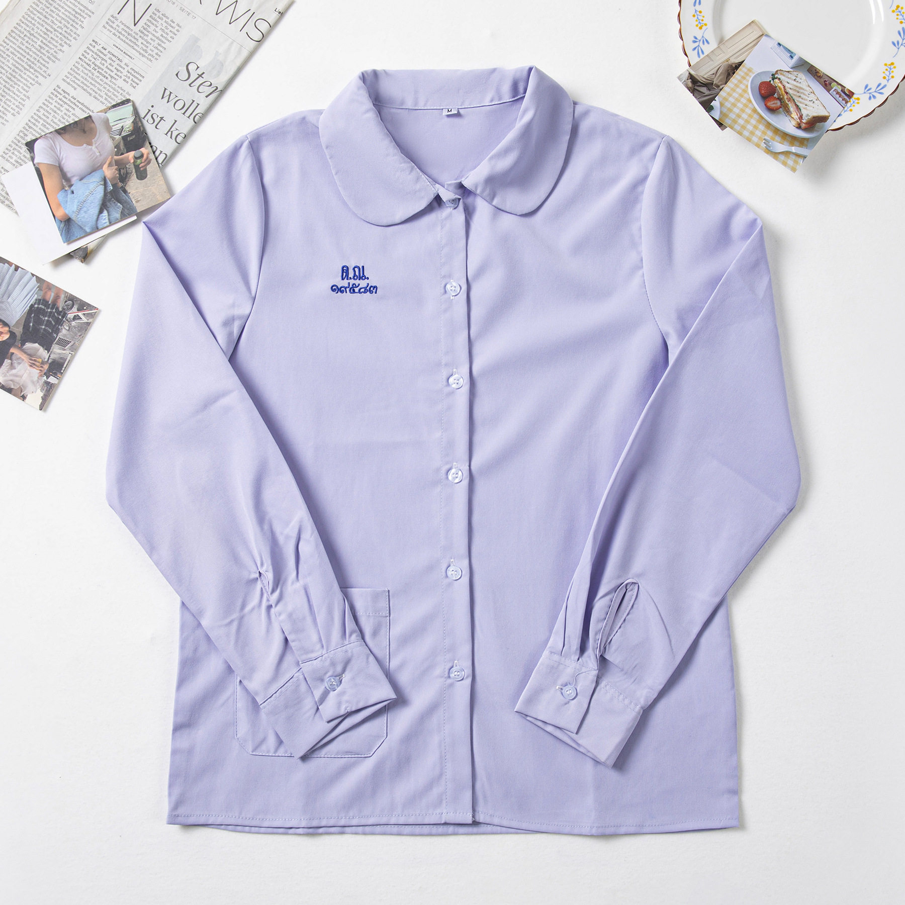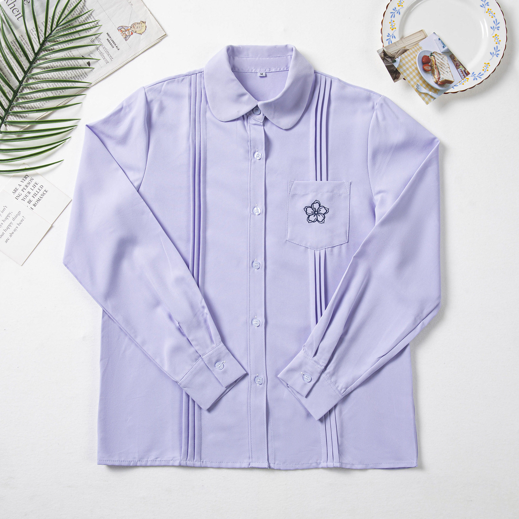 泰式女生圆领短袖衬衫校服学生班服学院风淡紫长袖毕业运动会衬衣