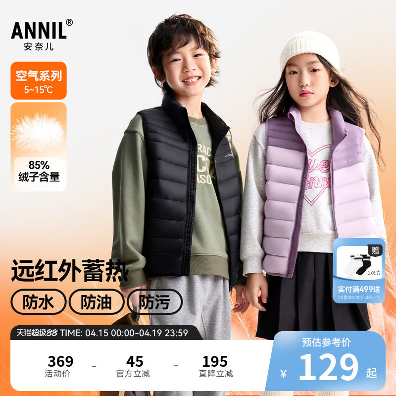 亚瑟士儿童羽绒马甲童装2025冬季新款女童三防科技男童外套亲子装