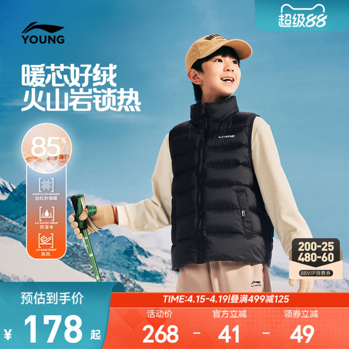 李宁儿童防泼水羽绒内胆马甲男孩新款男童装女孩青少年中大童冬装
