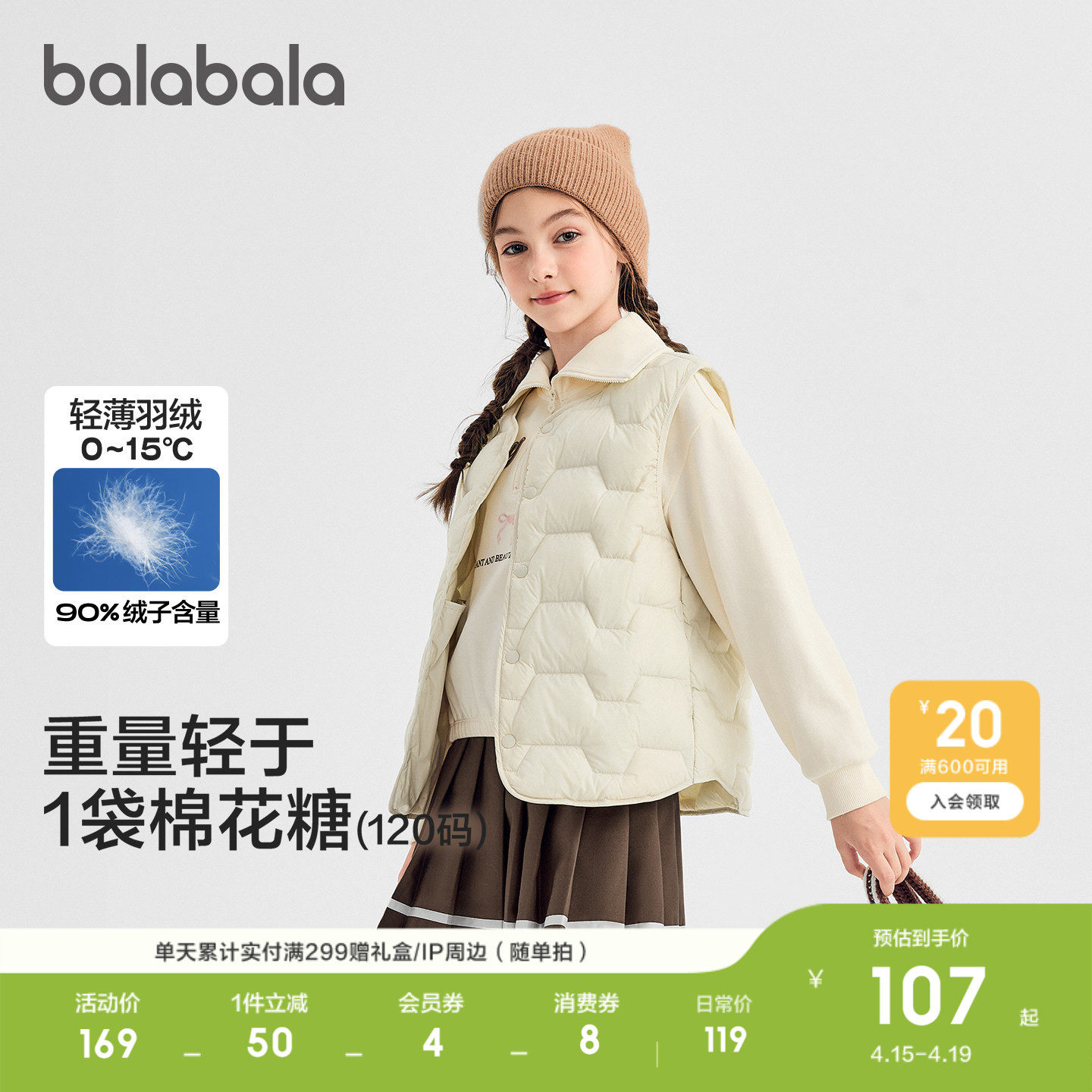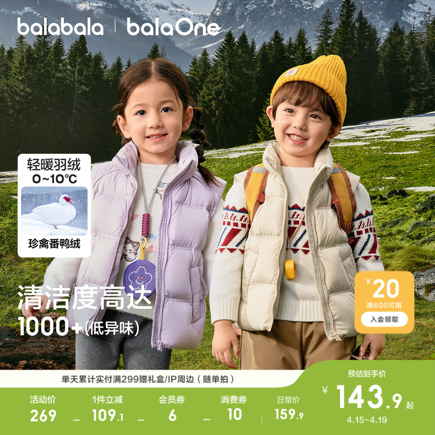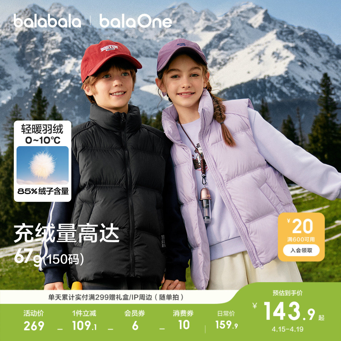 巴拉巴拉童装儿童羽绒马甲秋冬装2026男童女童轻薄休闲背心中大童