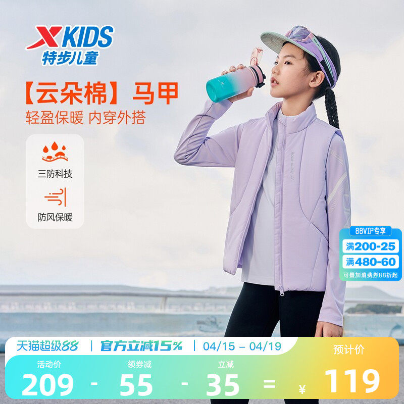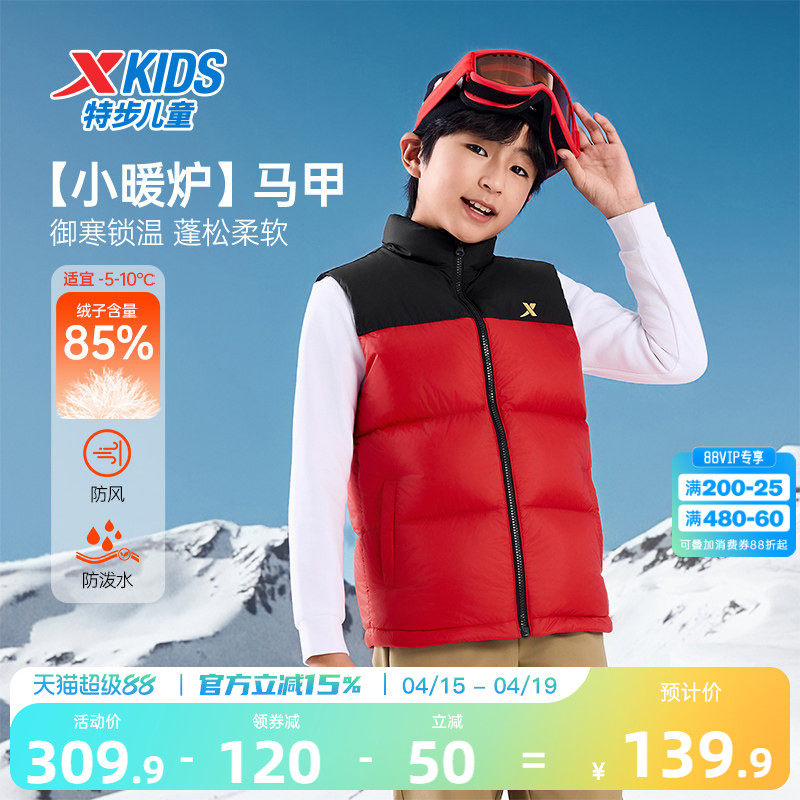 特步童装儿童羽绒服马甲2026秋冬款男童防寒服女大童无袖外套冬装