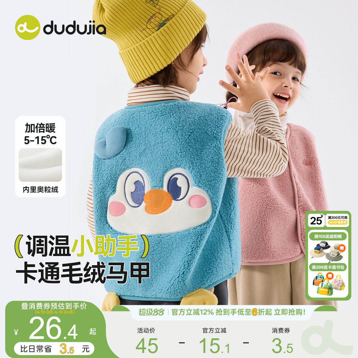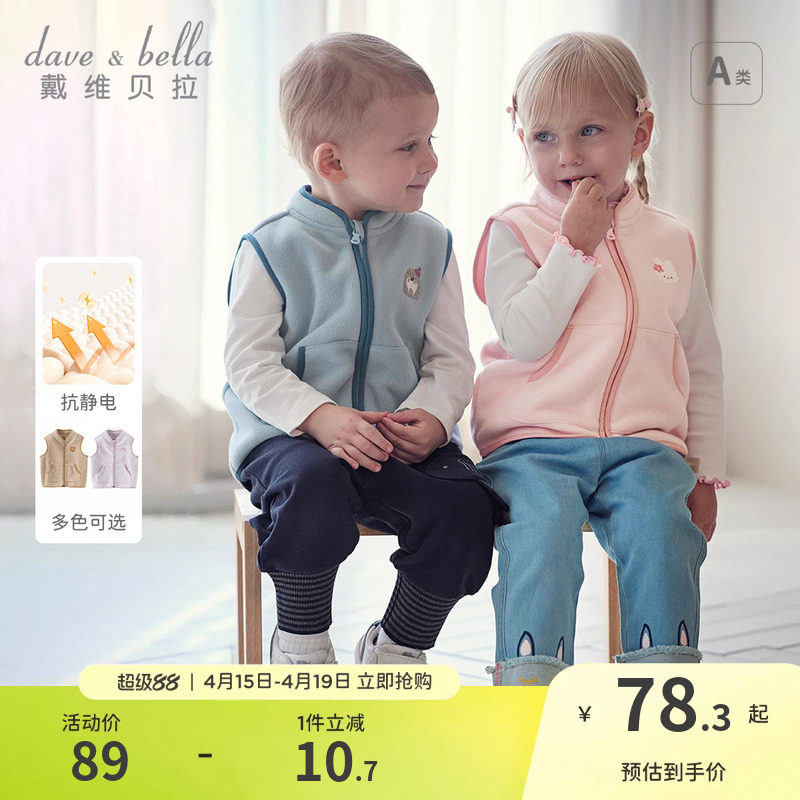 戴维贝拉儿童摇粒绒马甲外穿2026冬季新款男童抗静电女童宝宝背心