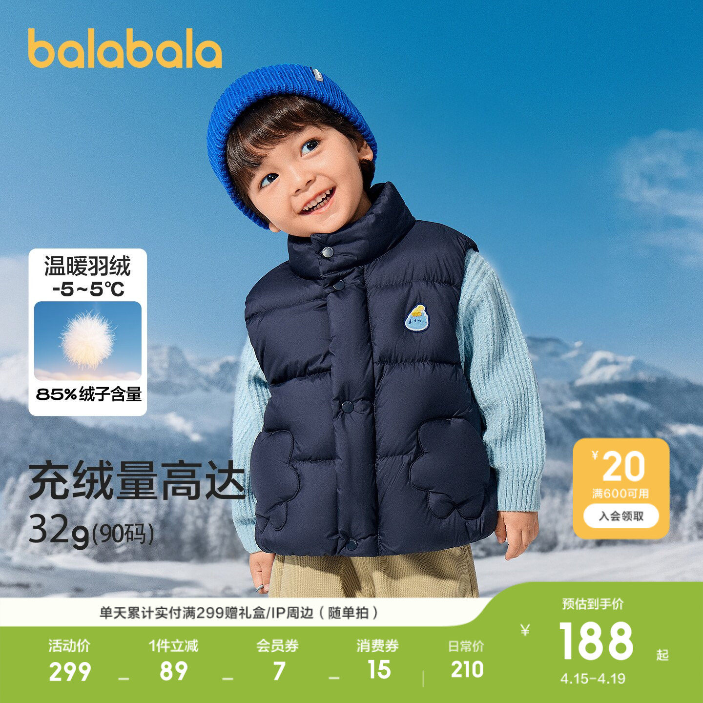 巴拉巴拉童装儿童羽绒马甲女童男童外穿休闲2026冬装高充绒保暖潮